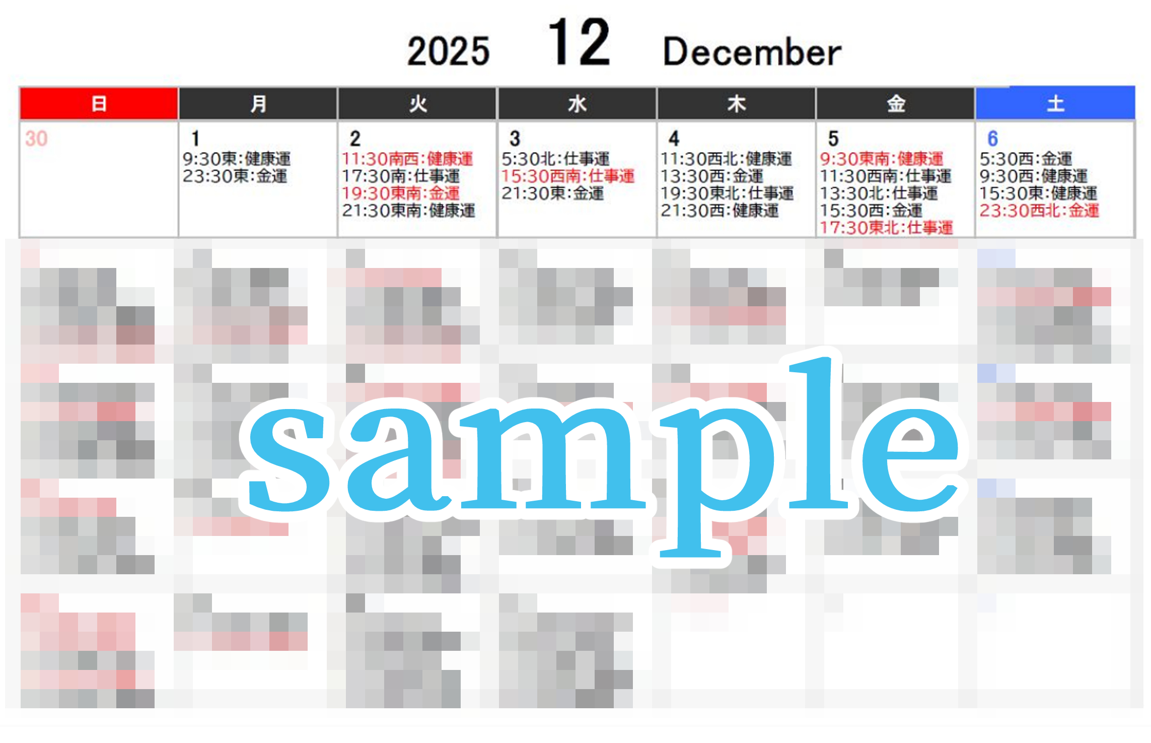 → プロの風水師が、その月の運気の流れに合わせて毎日の開運吉方や行動を鑑定したデータをお送りします。